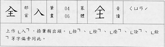 2. 整個、全體。 全家、全神貫注、全軍覆沒