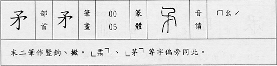 「矛」是古時候的一種長形兵器,尖頭、有柄。象形。