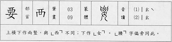 - 「襾」是從上向下覆蓋的意思。篆文像有物(