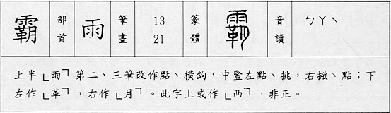 - 「雨」就是雨水、雨滴。篆文「一」指天,「