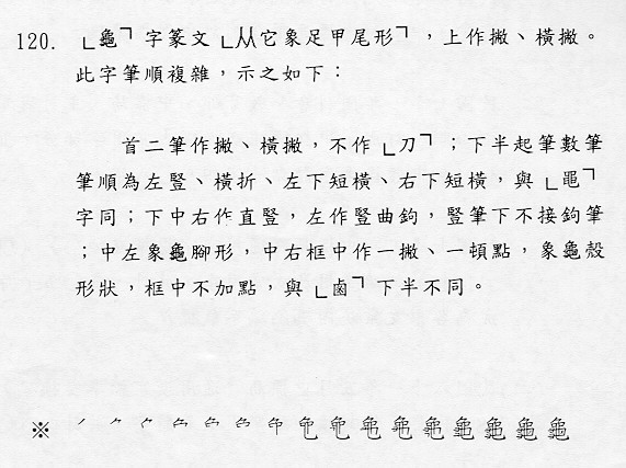 「龜」是一種爬蟲類動物,頭像蛇,有殼,壽命長。篆文象形。